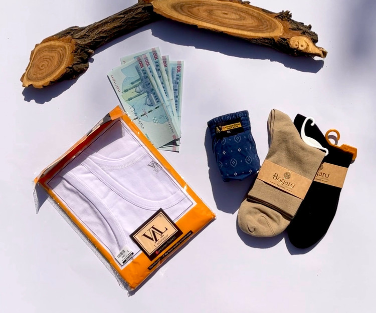شامل : یک عدد رکابی مردانه سفبد برند وال ، یک عدد شورت اسلیپ برند وال (رنگ انتخابی)، دو عدد جوراب نیم ساق برند بوگارو (رنگ انتخابی)